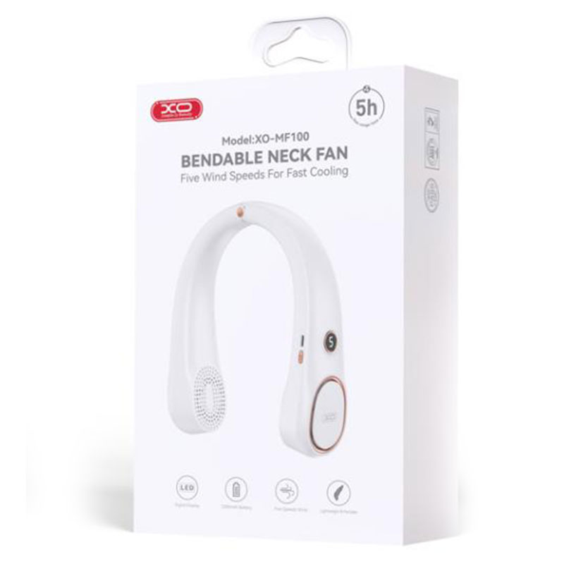 XO (MF100) » Ventilator pentru gat, Curved Fan, 1200mAh, 5 viteze, WHITE