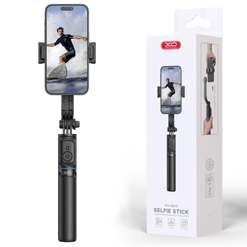 XO (SS13) Suport Stand, BT, tip Selfie, pentru telefon, brat telescopic, Tripods, 106cm, Suport detasabil, Black