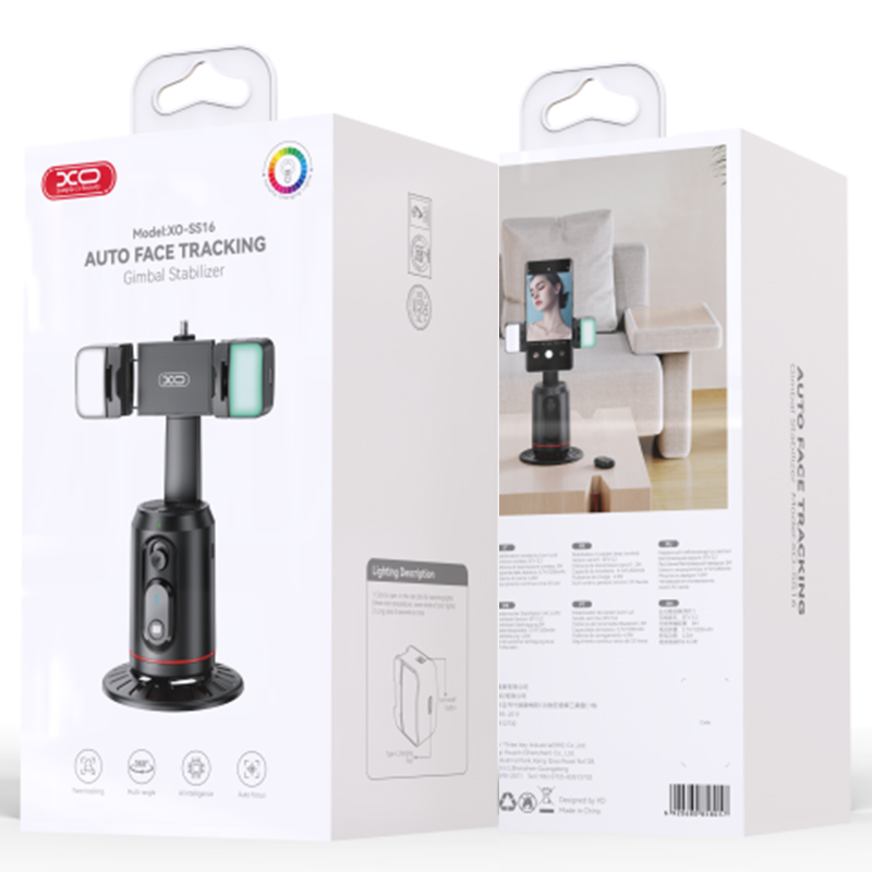 XO (SS16-L) Suport Stand, tip Selfie, BT 5.2, pentru telefon, cu lumini LED, AI cu urmarire faciala, MultiAngle, Black